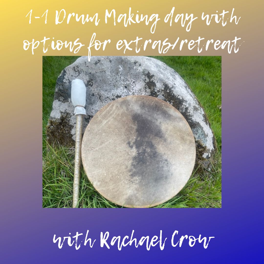 2 day drum birthing- £665 includes- 1 nights stay in my cabin, more in-depth drum preparation not included in the 1 day, working with the plants spirits of this land and adding them to the hide soak- magical hide elixir, beautiful home cooked meals, juices, smoothies, options for a hot tub, infra red lamp sessions…
