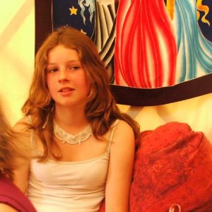 After we had witnessed belly dancing and listened to a story, we turned our heads to hear the questions of the crones who were guarding the gates; “should we let these men in?” “Do they respect and honour us as sisters?” the men were let in and they stood in front of us girls who were in a line with our moon mothers by our side. Then the men sang ‘we honour you’, once for every girl being celebrated.