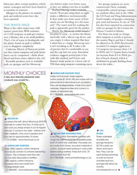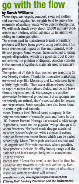 Organic Life Magazine article on Menstrual products including a review of Moon Times products.