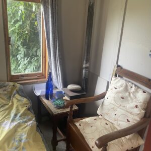 Toilet access are in the main house just a short walk over the garden. (Commode in cabin for night pees!) Kitchen has filtered water – ask for anything else you need.