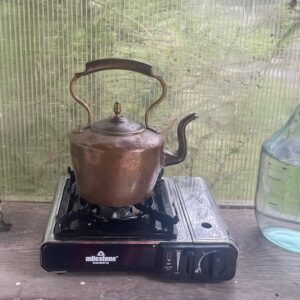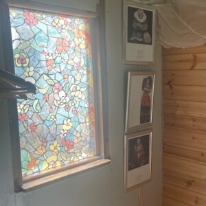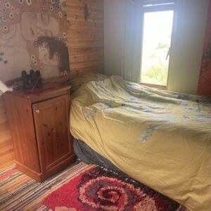 The cabin is a small cosy space with a single bed, filtered drinking water, a kettle and camping stove for teas/your own meals.