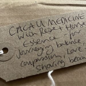 Cacau & Rose– Ceremonial Brazilian Cacau- made by a womens co-op in Brazil, Organic Brandy- 40%, Welsh Horse Essence, Rose Glycerin. 30ml. BBF 5/5/26