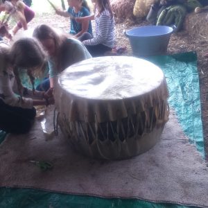 Hides come from mostly within the United Kingdom and are either from culled wild fallow deer/stags. The hide is a waste product so by using it we are honouring the animal. As a life long vegetarian I’ve wrestled with the ethics for a long time, in the end my calling to make drums and bring people to the heartbeat of our Mother was too strong! I source them as ethically as possible, supporting local crafts people. On occasion I may have to source hides from outside the UK, hides such as buffalo /cow are from the US. Read more here.