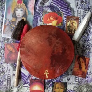 The Red Moon Drum awakens us to remember to listen to the voices of the ancient mothers, the witches, healers and midwives, all the ancient ones of this land….and our own body wisdom.