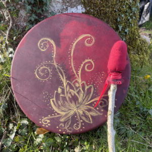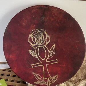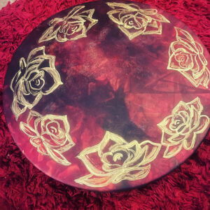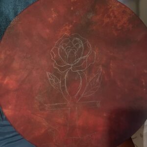 Additional extras- simple art/symbols (like this rose drum) drum bag, peronalised herbal elixir, drum decorations to create a ceremonial drum for you, matching rattle, rosewood hoop, on occasion i can get Reindeer and horse hide, this is an extra £100, buffalo, cow and goat are sometimes available too.