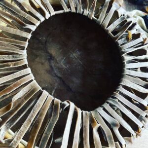 Hides come from mostly within the United Kingdom and are either from culled wild fallow deer/stags. The hide is a waste product so by using it we are honouring the animal. As a life long vegetarian/vegan I’ve wrestled with the ethics for a long time, in the end my calling to make drums and bring people to the heartbeat of our Mother was too strong! I source them as ethically as possible, supporting local crafts people. On occasion I may have to source hides from outside the UK, hides such as buffalo /cow are from the US. (read more here)