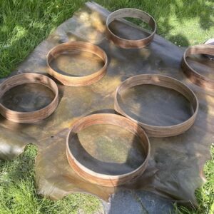 drum making supplies, hides- deer, buffalo, horse, reindeer, plus hoops- oak, ash, rosewood, copper hoops, chamois leather