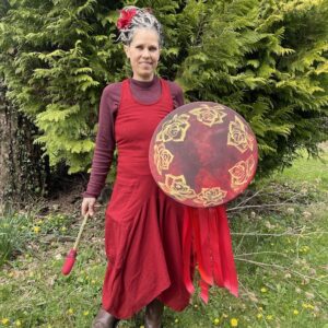 Drum of the Wild Antler Path- 16″ Dyed deer drum with rosewood hoop
