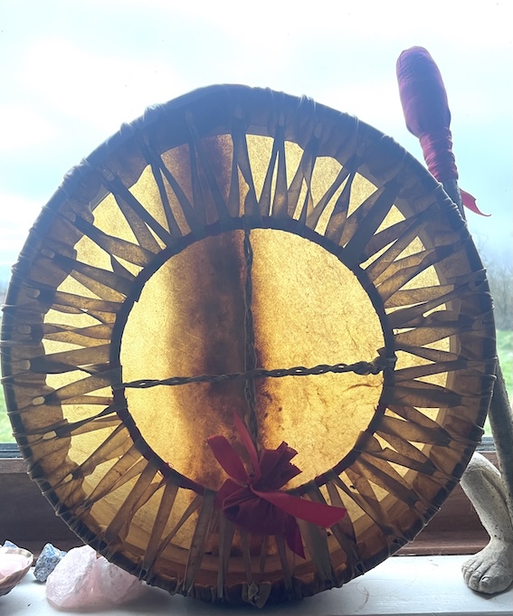 This drum is a bridge- supporting – crossing from old identity to new embodiment, reclaiming authority rooted in compassion, heart-led visibility, Sacred service.