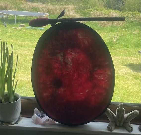 Every element woven into this drum has been chosen with care and devotion. The hides I use are ethically sourced within the UK, and by working with them, we honour their life force rather than allow it to be discarded.