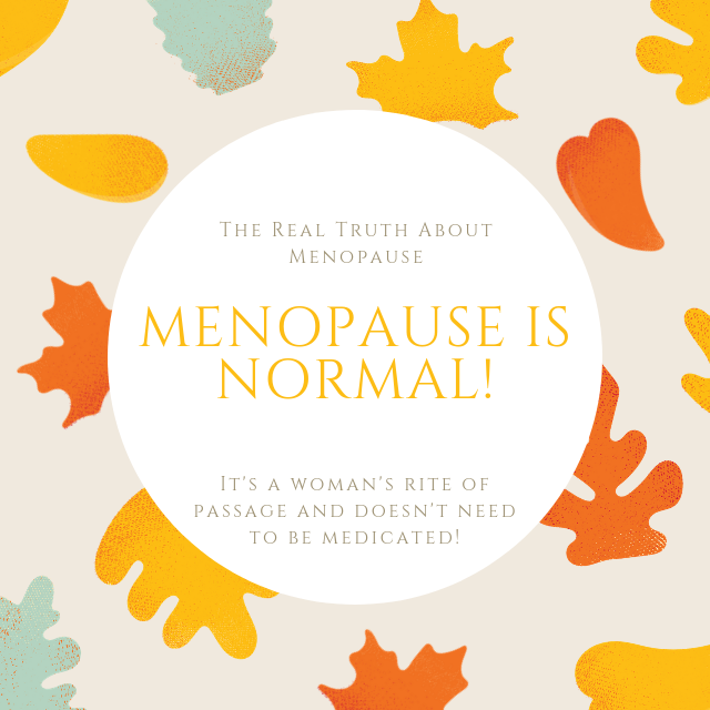 You see we seem to have forgotten that menopause it completely normal! Just like our periods and birth, this Rite of Passage doesn’t need to be medicated either!